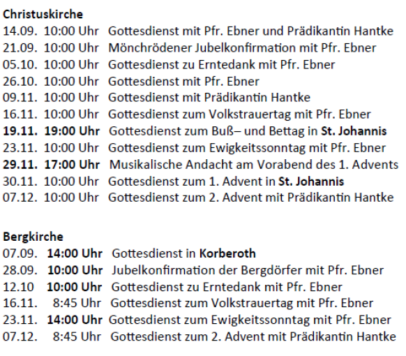 Unsere Gottesdiensttermine
